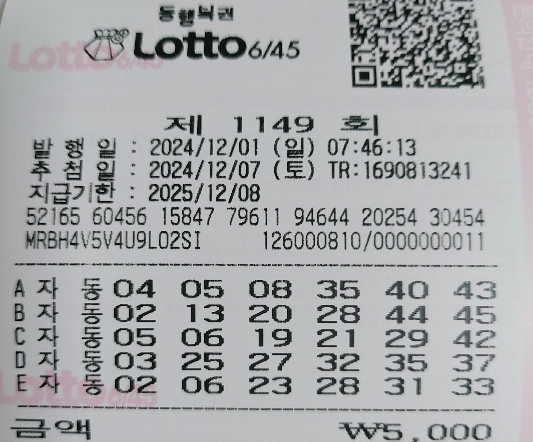 로또랑 유튜브 로또 1149회 자동 일요일 용지 공유