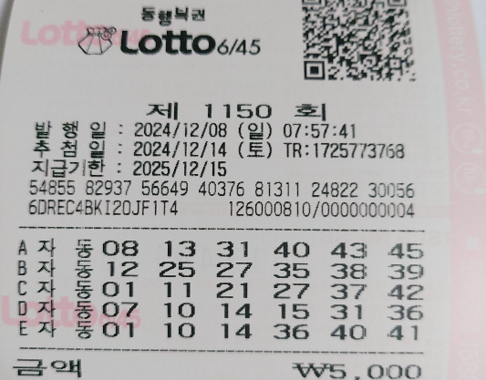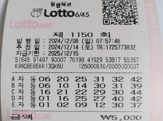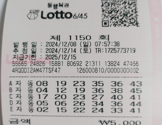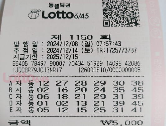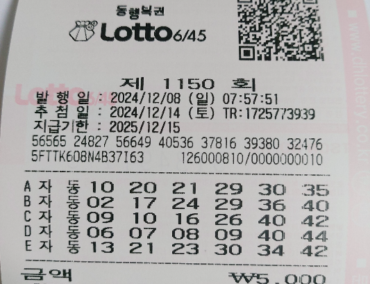로또 1150회 일요일 첫 자동 용지 공유합니다. 새로운 한 주가 시작되었습니다. 로또 1150회 자동분석 잘하시어 좋은 결과 있으시길 바랍니다.