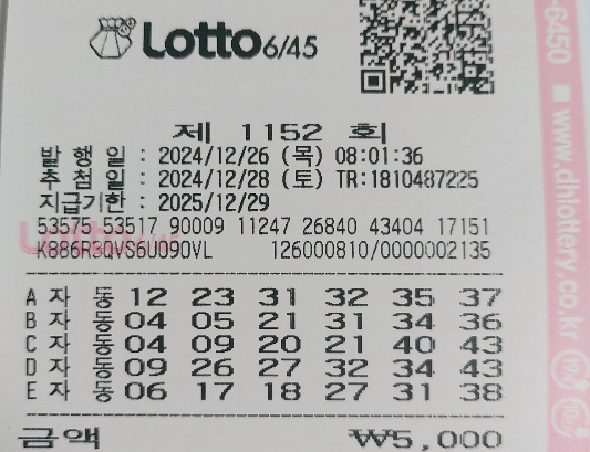 오늘은 로또 1152회 자동 목요일 용지를 함께 공유하고자 합니다. 이번 분석이 여러분께 도움이 되기를 진심으로 바랍니다.