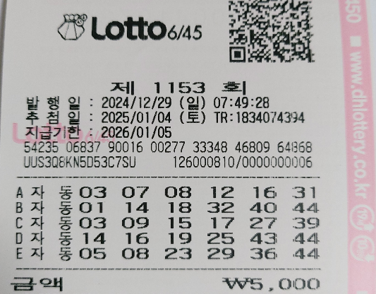 오늘은 로또 1153회 첫자동 용지를 공유드리고자 합니다. 로또에 대한 기대감은 언제나 크고, 특히 연말이 다가오면서 많은 분들이 좋은 결과를 바라시는 시점입니다. 이번 분석이 여러분께 조금이나마 도움이 되길 바랍니다.