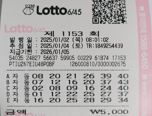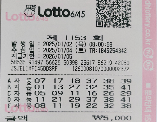 오늘은 로또 1153회 자동 목요일 용지를 여러분과 공유하고자 합니다. 매주 많은 분들이 로또를 통해 꿈과 희망을 품고 계신데요, 특히 자동으로 선택된 번호는 때때로 예상치 못한 행운을 가져다주기도 합니다.