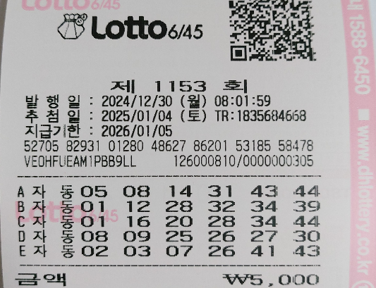 로또 1153회 자동 월요일 용지를 공유합니다. 한 해를 돌아보며 기쁨과 아쉬움이 교차하지만, 무엇보다 여러분과 함께할 수 있었던 것에 감사드립니다.