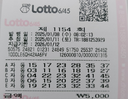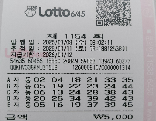 안녕하세요! 오늘은 로또 1154회 자동 수요일 용지를 공유하고자 합니다. 매주 로또는 많은 분들께 꿈과 희망을 주며, 자동으로 선택된 번호가 때때로 뜻밖의 행운을 가져다주는 경우가 많습니다.