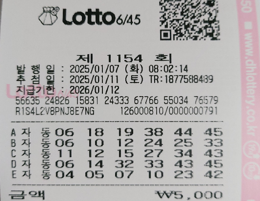 안녕하세요! 오늘은 로또 1154회 자동 화요일 용지를 공유하고자 합니다. 매주 로또는 많은 분들께 꿈과 희망을 주며, 자동으로 선택된 번호가 때때로 뜻밖의 행운을 가져다주는 경우가 많습니다.