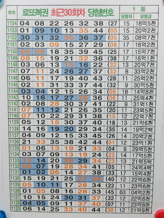 유튜브 채널: 로또랑 로또 1155회 참고 자료