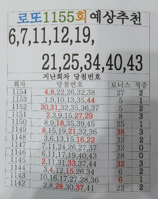 • 로또 1155회 자동 화요일 용지 공유 2025.01.14