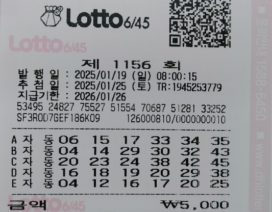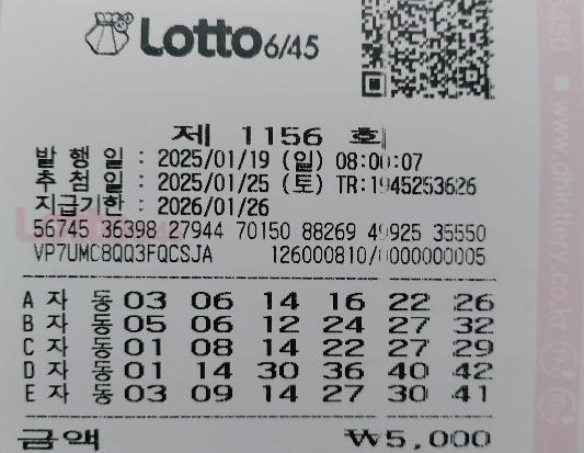 로또 1156회 자동 화요일 용지 공유 (0) 2025.01.21 로또 1156회 자동 월요일 용지 공유 (0) 2025.01.20 로또 1155회 자동 일~토 용지 총정리 (0) 2025.01.18 로또 1155회 자동 금요일 용지 공유 (0) 2025.01.17 로또 1155회 자동 목요일 용지 공유 (0) 2025.01.16
